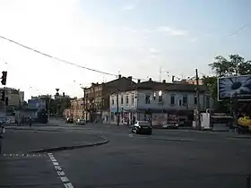 Одна сторона площади застроена преимущественно купеческими зданиями первой половины XIX века, другую сторону занимает строение Житнего рынка и здание автостанции «Подол».