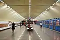 Над платформами расположены люминесцентные светильники на облегченных алюминиевых подвесах. Свод окрашен в жёлтый цвет, пол выложен из серого гранита с расшивками из красного и вставками габбро.