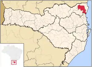Агломерация Жоинвили (Северная и Северо-Восточная Санта-Катарина) на карте штата