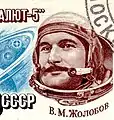 Виталий Жолобов с 6 июля по 24 августа 1976 года совершил полёт в космос вместе с Борисом Волыновым на космическом корабле Союз-21 к орбитальной станции Салют-5 в качестве бортинженера. Из-за плохого самочувствия В. М. Жолобова, заболевшего после ликвидации последствий аварии на борту, полёт был прерван через 49 суток.
