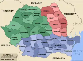Румыния разделена на 41 жудец и 1 муниципий (2011):