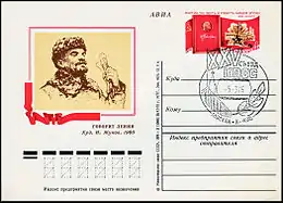 «Говорит Ленин». Рисунок на почтовой карточке с оригинальной маркой СССР, 1976 (ЦФА [АО «Марка»] № 34)