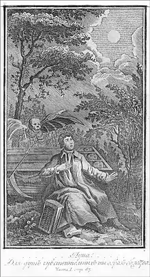 Душевное состояние Жуковского в 1802 году выразилось в попытке переложения элегии Грея «Сельское кладбище». Готовый текст он отвёз Карамзину на дачу в Свирлово: с лета Николай Михайлович начал редактирование вновь основанного «Вестника Европы». Перевод не понравился, но Карамзин указал удачные строки и велел работать дальше, заключив, что «может получиться великолепная вещь» [42]. Влияние Н. М. Карамзина оказалось для Жуковского стимулом к поэтическому воплощению и философской рефлексии феномена меланхолии. Сразу же проявилось и их различие: если Карамзин рационально декларировал меланхолию как средство психологической самозащиты и лишь затем приоткрывал завесу личностной замкнутости навстречу природе (в элегии «Меланхолия»), то Жуковский представлял восприятие природы исходным моментом на пути душевного приобщения к духовным пространствам меланхолии[43].