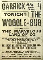 - После успеха книги «Чудесная страна Оз» Баум написал мюзикл по мотивам её сюжета; он надеялся повторить успех мюзикла 1902 года Волшебник страны Оз. Новый мюзикл под названием «Жук-Кувыркун» был поставлен в театре «Гаррик» в Чикаго, роль Жука-Кувыркуна в нём исполняли 26-летний Фред Мейс (который впоследствии стал звездой в комедиях Мака Сеннета) и Сидни Дин — первый австралиец, снявшийся в голливудском фильме[7]. Ф.Мейс исполнял в мюзикле такие песни, как «Мистер Жук-Кувыркун, С. У. и В. О» и «Леди Жук ждёт меня». Сюжет мюзикла во многом отличался от сюжета книги. Так, в мюзикле Жук-Кувыркун питает страсть к платьям из яркой ткани с тартаном, и мгновенно влюбляется в того, кто носит такой наряд. Среди персонажей также появились «цветной» (вероятно, блэкфейс) повар Дина и профессор Knowitt (игра слов — на английском означает «знаю это») как любовник Присси Принг, женщины-лейтенанта из армии генерала Джинджер. Мюзикл получил несколько доброжелательных отзывов, но в конечном счёте, как выразился один критик, «перестал цеплять» и сошёл со сцены менее чем через месяц.