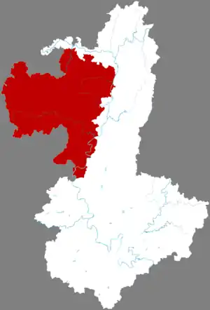 Автономный уезд делится на 4 посёлка, 14 волостей и 2 национальные волости.