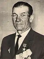 Указом Президиума Верховного Совета СССР «О присвоении звания Героя Советского Союза генералам, офицерскому, сержантскому и рядовому составу Красной Армии» от 10 января 1944 года за «образцовое выполнение боевых заданий командования на фронте борьбы с немецко-фашистскими захватчиками и проявленные при этом отвагу и геройство» был удостоен высокого звания Героя Советского Союза с вручением ордена Ленина и медали «Золотая Звезда»[4][5].