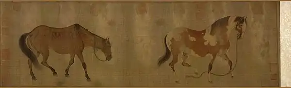 Большинство работ, созданных Жэнь Жэньфа на эту тему, носят вполне нейтральный характер: «Четыре конюха и три коня» (Кливленд, Музей искусства), «Девять коней» (Канзас-Сити, Музей Нельсона-Аткинса), «Кони и конюхи» (Лондон, Музей Виктории и Альберта), «Взнузданный конь» (Индианаполис, Музей искусства) и т. д. Однако наибольшую славу ему принес сатирический свиток «Тощий и толстый конь» (Гугун, Пекин).