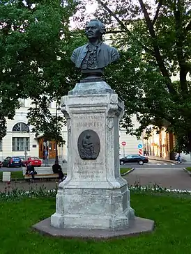 - бюст М. В. Ломоносова на памятнике учёному в центре сквера на площади Ломоносова в Санкт-Петербурге (установлен в 1892 году).[2],