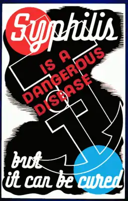 ![]() «Сифилис опасное заболевание, но его можно вылечить». Плакат, поощряющий лечение. Опубликовано между 1936 и 1938 годами. | |