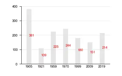 На 1 января 2018 года насчитывалось 159 жителей в 77 домохозяйствах, из них 23 младше трудоспособного возраста, 87 — в трудоспособном возрасте и 49 — старше трудоспособного возраста[3].