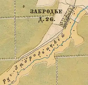 Согласно карте 1879 года деревня называлась Забородье и состояла из 24 крестьянских дворов[15].