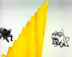 По обе стороны высокого ярко-жёлтого забора, не видя одна другую, идут две очень несхожие между собой собаки. Почуяв присутствие друг друга, они начинают угрожающе рычать. Рычание переходит в ожесточённый лай. Беснуясь в нарастающей злобе, псы бросаются на забор. Их атаки становятся всё агрессивнее.