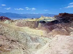 За миллионы лет до фактического затопления и расширения Долины Смерти, а также до существования озера Мэнли (англ. Lake Manly), другое озеро занимало большую часть Долины Смерти, включая местность Забриски-Пойнт. Это древнее озеро начало формироваться примерно девять миллионов лет назад. В течение нескольких миллионов лет существования озера осадки собирались на дне в виде солевой грязи, гравия, образовавшегося в результате естественного разрушения близлежащих гор, и вулканического пепла от активного в то время вулканического поля Чёрных Гор (англ. The Black Mountains). Климат местности, где располагалось озеро, был сухим, но не настолько сухим, как в настоящее время. Верблюды, мастодонты, лошади, плотоядные животные и птицы оставляли следы в грязи на берегу озера, вместе с ископаемыми травами и тростниками. Бораты, которые составляли большую часть исторического прошлого Долины Смерти, формировались в озёрных водах из вод термальных источников и изменений риолита в близлежащем вулканическом поле. Выветривание и термальные воды также участвовали в формировании разнообразия цветов местности.