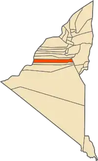 Город находится в центральной части вилайета, на территории одного из оазисов центральной Сахары, на расстоянии приблизительно 1090 километров к юго-юго-западу (SSW) от столицы страны Алжира. Абсолютная высота — 252 метра над уровнем моря[1].