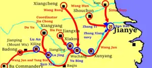 - Ху Фэнь должен был совместно с Ван Цзюнем взять Сякоу, после чего его 7.000 должны были перейти к Ван Цзюню.