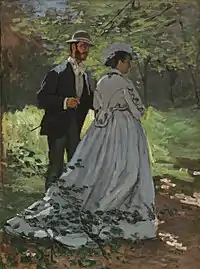 Изображение природы, естественный свет, видимый на волосах и плечах людей, размытие цвета на тщательно прорисованных листьях деревьев — всё это характеризуется импрессионистической техникой, получившей сильное развитие в творчестве Моне и ставшей его главным художественным стилем[68][4][12]. В настоящее время критики оценивают картину как шедевр Моне и его дебют в импрессионизме, ознаменовавшийся настоящей революцией в истории искусства[69][70]. Об этом говорит активное использование художником на данной картине чёрного цвета, от которого импрессионисты впоследствии отказались, считая, что он не существует в чистом виде в природе и может быть более натурально передан рефлексами других цветов, как в упоминавшихся «Женщинах в саду»[4].