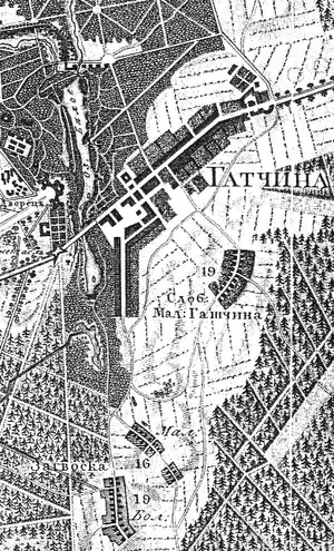 В 1796 год, когда Гатчина по указу Павла I стала городом, к деревне была проведена улица, получившая название Загвоздинская (позже она называлась Люцевская, а ныне — улица Чкалова).