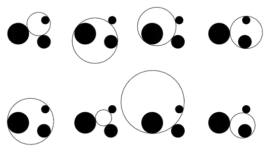- построить с помощью циркуля и линейки окружность, касающуюся трёх окружностей.
