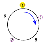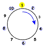 С целью подробного объяснения возможных ситуаций, которые могут возникнуть в ходе решения, упростим исходную задачу и рассмотрим случай № 1, причем, уменьшим круг солдат с сорока одного (сорок солдат и Иосиф) до десяти и предположим, что вместо каждого третьего солдата должен умереть каждый второй. В результате будем рассматривать круг солдат, изображенный на рис 1.