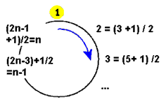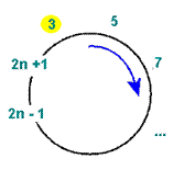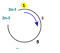 | Рис. 7 — 1-й этап при количестве солдат в круге 2n + 1 |