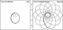 которые соответствуют экстремальным значениям ζ. Действительный период эллиптической функции Вейерштрасса составляет 2ω1; таким образом, частица возвращается к тому же радиусу, когда угловая координата возрастает на 2ω1, что, вообще говоря, отличается от 2π. Поэтому орбита как правило прецессирует, однако при угол прецессии за один оборот (2ω1 − 2π) довольно мал.