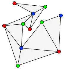- A. A. Kooshesh, B. M. E. Moret. Three-coloring the vertices of a triangulated simple polygon // Pattern Recognition. — 1992. — Т. 25, вып. 4. — С. 443. — doi:10.1016/0031-3203(92)90093-X.