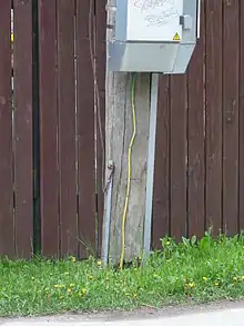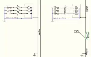 Иногда в качестве заземлителя используют водопроводные трубы или трубы отопления, однако их нельзя использовать в качестве заземляющего проводника[13]. В водопроводе могут быть непроводящие вставки (например, пластиковые трубы), электрический контакт между трубами может быть нарушен из-за коррозии, и, наконец, часть трубопровода может быть разобрана для ремонта. Также существует опасность поражения электрическим током при соприкосновении с токопроводящими частями сантехники.