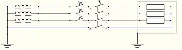 - Тип заземления системы — комплексная характеристика системы распределения электроэнергии в целом (источников питания, линий электропередач, электрооборудования, способы заземления открытых проводящих частей источников питания, линий электропередач, электроустановки или электрооборудования)[6].