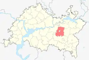 Район находится на востоке республики. Граничит с Тукаевским, Сармановским, Альметьевским, Нижнекамским районами. Территория расположена на северо-западных склонах Бугульминско-Белебеевской возвышенности. В рельефе прослеживается ярусность: нижний — 160—180 м, высокий — 200—240 м. Климат умеренно-континентальный. Лето — тёплое, но недостаточно влажное, среднесуточные температуры — около +15 °С. Однако, возможны краткосрочные (10—15 дней) периоды жары и засухи. Зима суровая и снежная, снег выпадет в уже декабре, его высота достигает 35-40 см. Средняя январская температура составляют −13 — −15 °С[8].