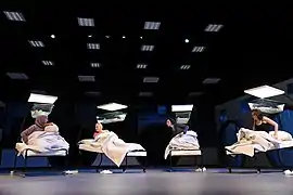 Зайниев признавал некоторую мелодраматичность работы, однако отмечал, что «старался не давить на чувства»[58]. По отзывам критики, его пьеса «ярко и гротескно демонстрирует пороки общества», ставя вопрос: «Что значит родить ребенка в современной России?»[191]. Поднимая умалчивавшиеся проблемы, указывая на незащищенность своих героев, и их неустроенность в этом мире[192], Зайниев здесь, тем не менее, показывает «человека, противостоящего жизненным обстоятельствам и заблуждениям»[191]. Финал, равно как и вывод, к которому приходят будущие матери, довольно оптимистичный и обнадёживающий: «Раз мы родились женщинами, будем рожать. Так должно быть»[107]. Сценографическое решение спектакля было реализовано С. Скомороховым[193], который, как указывали критики, не пытался воссоздать достоверную обстановку больницы[189]. Гладкие фактуры, полимерные материалы, нависающие над беременными прозрачные ванны с детскими игрушками, круглые проходы в кабинеты с развивающимися белыми шторами создают атмосферу холодного неуютного мира, в который войдут дети[193], в связи с чем палата предстаёт как «поле битвы между жизнью и смертью, или, если угодно, светом и тьмой»[189]. Композитором выступил Э. Низамов, уже сотрудничавший с Зайниевым по альметьевской постановке Исанбета[44], и создавший в новом спектакле «нежнейшее» и «проникновенное» музыкальное оформление[194]. Как указывалось, постановка стала «бесспорным успехом татарского театра»[104], всей творческой команды, в том числе и Зайниева[195]. Тем не менее, попытавшись «разоблачить нищету современного общества»[196], по оценкам других критиков, Зайниев создал «выспренное, оторванное от жизни, вопиюще старомодное произведение», наполненное высокопарными и патетичными монологами с призывами к добродетели и миру, которое видится как «пропаганда патриархальных ценностей» в рамках «идеологической повестки дня»[189], где в борьбе со смертью и войной единственная миссия женщины — рожать[194]. В 2020 году спектакль был снят с репертуара[197].