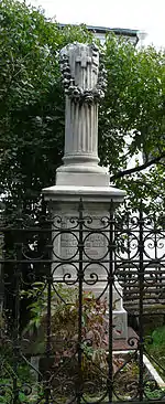 Постамент на могиле выполнен в виде «Сломанной колонны», ассоциируемой с масонским символизмом[3].
