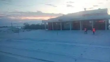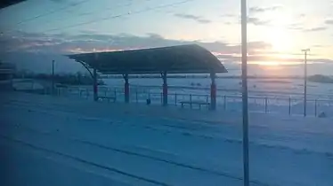 На станции построен двухэтажный вокзал (площадью 400 м²), оборудованы парковочные места, построены пешеходный мост через железную дорогу, автобусная остановка и вертолётная площадка.[1]