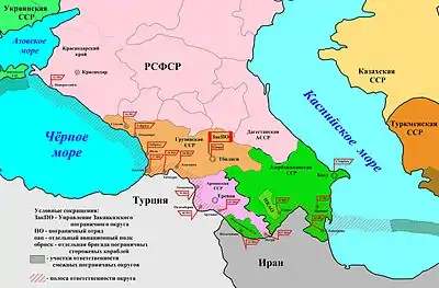 8 марта 1939 года Закавказский пограничный округ был разделён на 3 отдельных пограничных округа по союзным республикам[6]: