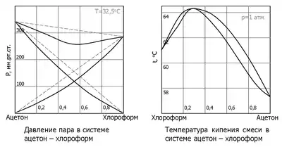Поскольку , так как с ростом концентрации второго компонента растёт и его парциальное давление, то равенство может соблюдаться только если — когда состав пара и раствора одинаков, что и доказывает второй закон Коновалова. Растворы, состав которых отвечает точке экстремума, кипят при постоянной температуре, а их состав при перегонке не изменяется. Такие растворы называются «азеотропными растворами» или «азеотропами». Разделение азеотропов методом фракционной перегонки невозможно. Для разделения таких растворов используют химические методы, перегонку с третьим компонентом либо фракционную перегонку при другом давлении.