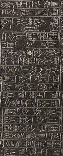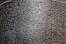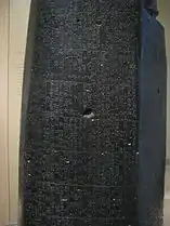 ![]() Копия стелы с Законами Хаммурапи из Королевского музея Онтарио (деталь) | |