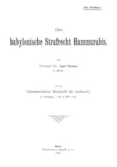 Оригинальный текст (нем.)[показатьскрыть]Dass die in Rede stehende Gesetzsammlung aus der Zeit der ersten babylonischen Dynastie stammt, nimmt Meissner gewiss mit Recht an. Die Vermuthung liegt nahe, dass kein anderer als Hammurabi selbst, der Begründer des babylonischen Einheitsstaates, den Befehl gegeben habe, die damals geltenden Gesetze und Rechtsordnungen in Einem Gesetzkodex zu vereinigen. Wären diese aus der Bibliothek Asurbanipals stammenden Tafeln vollständig, so würden sie für die vergleichende Rechtsgeschichte unzweifelhaft von sehr hohem Werthe sein.