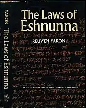 Непосредственным предшественником Законов Хаммурапи является юридический сборник из города Эшнунны, составленный около 1790 года до н. э.; таблички с его фрагментами были обнаружены в 1945 и 1947 годах в развалинах города Шадуппума археологом Тахой Бакиром и переведены в 1948 году ассириологом А. Гётце. Законы Эшнунны первоначально приписывались Билаламе; в современной науке их автором признаётся царь Дадуша. В отличие от предыдущих шумерских законов этот документ написан на старовавилонском диалекте аккадского языка, причём таблички с его текстом по ряду признаков относятся к учебным копиям, выполненным в школе писцов. Законы состоят из почти не сохранившегося пролога и около 60 статей[27][28][29][30].
