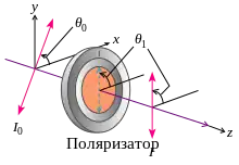 где — интенсивность падающего на поляризатор света, — интенсивность света, выходящего из поляризатора.