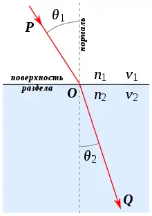 Это выражение представляет собой закон Снеллиуса[13].