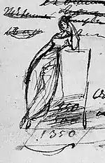 - А. С. Пушкин. Портрет гр. А. Ф. Закревской. 1828 г. 26 мая. Рис. чернилами на листе со списком стихотворения "Дар напрасный, дар случайный: ". С пометой Пушкина: «1828 г. 26 мая». Пушкинский Дом. Санкт-Петербург. Тетрадь 80. Л. 1. По атрибуции А. М. Эфроса