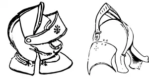 Примерно до 1530 года закрытые шлемы чаще всего имели забрало в форме тупого угла — так называемый «воробьиный клюв». В Германии, в период с 1510 по 1530 года, пользовались популярностью забрала в форме кузнечных мехов («гармошкой») и так называемая «обезьянья морда» с круглой или овальной выпуклостью перфорированной отверстиями для дыхания. Также в этот период появилась мода на «гротескные» шлемы, забрала которых делались в виде человеческих лиц, морд животных и тому подобного[1].