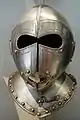 Закрытый шлем с забралом из двух половин и воротниковыми пластинами