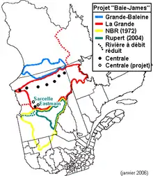 Строительство велось с 1974 года Энергетическим сообществом Бе-Жамс по заказу государственной компании Гидро-Квебек и является крупнейшим проектом последней.