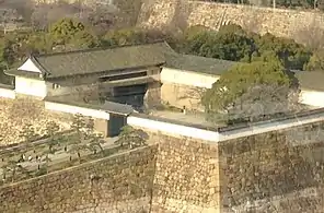До XVI века ворота располагались непосредственно в стене без дополнительных построек и носили название хира-когути (яп. 平虎口). В сочетании с выступами стен и башнями конструкция называлась ёкоя, позволяя вести фланговый огонь.