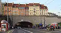 На перекрытии тоннеля архитекторы тщательно восстановили жилые дома эпохи барокко.