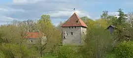 Замок состоял из трехъярусной башни с подвалом и хозяйственных построек. Подвал и первый этаж башни перекрыты сводами, второй и третий имели деревянное перекрытие. Два нижних этажа имели сводчатые потолки. Второй этаж был представительским, третий жилым, а четвёртый служил для оборонительных целей. Второй этаж замка предназначался для работы. На третьем этаже сохранились туалет (данцкер), помещение для купаний, часовня и камин. На четвёртом этаже с каждой стороны было по три проёма без остекления и без решёток. В толще стены расположена межэтажная лестница. Размеры башни составляют 9,6—10,1 м, высота — 13,1 м, толщина стен — 1,3—2,4 м. Башня построена из местного известняка.