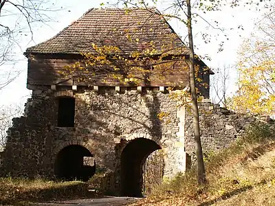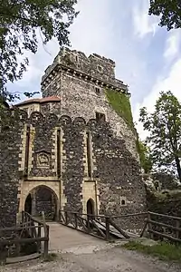 Главный замок состоит из двух уровней. На нижнем находится резервуар с питьевой водой и подвалы, в которых раньше была пивная зала, кладовая и столовая для слуг. На партере когда-то были комнаты для гостей, но после реконструкции здесь была обустроена корчма для путешественников и кухню. На этом уровне также есть две залы: