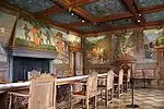 - Рыцарский зал (фр. Salle des chevaliers) — вероятно, художественная вершина интерьера замка, украшенная циклом настенной живописи работы тех же Барона и Менна, в 14 сценах изображающим реальные и легендарные события из истории замка и графского рода[39][40].