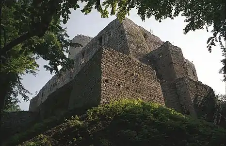 Основная часть здания, возведенная на пятиугольном плане — так называемый верхний замок — достаточно однородное четырехкрылое сооружение вокруг небольшого внутреннего двора. На фоне замка отчетливо выделяется башня, расположенная в юго-восточном углу замка. В наше время весь верхний замок вообще не имеет крыши (раньше он был покрыт двускатной крышей), а пространственное расположение внутри замка является результатом перестройки XVIII века. На первом этаже ранее преимущественно находились хозяйственные помещения: столовая (трапезная), кухня, кладовка, склад, пекарня и казна. Также на этом этаже находится колодец, глубиной более 24 м, который происходит из древнейшего периода существования замка — над ним была деревянный коловорот с ведрами.