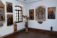 В экспозициях и фондах комплекса представлены также коллекции предметов сакрального искусства и церковной утвари, украинских и европейских древностей.